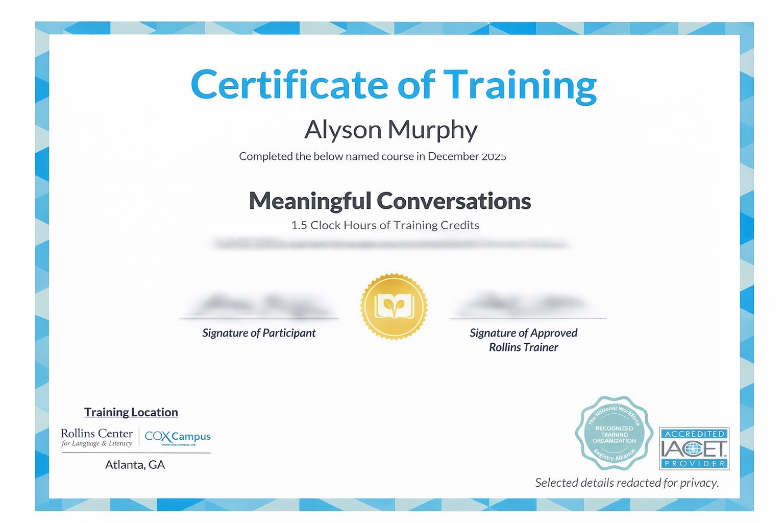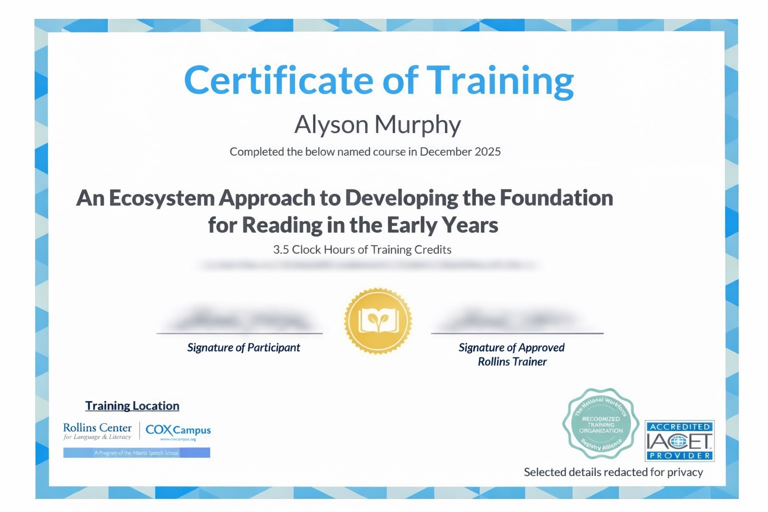 State-recognized training, certifications, and continuing education completed through accredited providers.